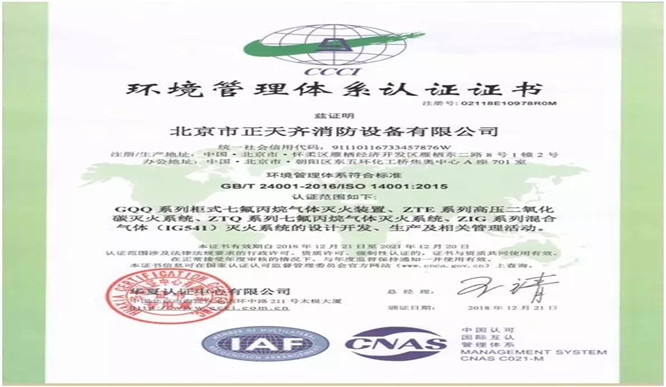 正天齊消防獲環(huán)境管理體系認(rèn)證證書(shū)