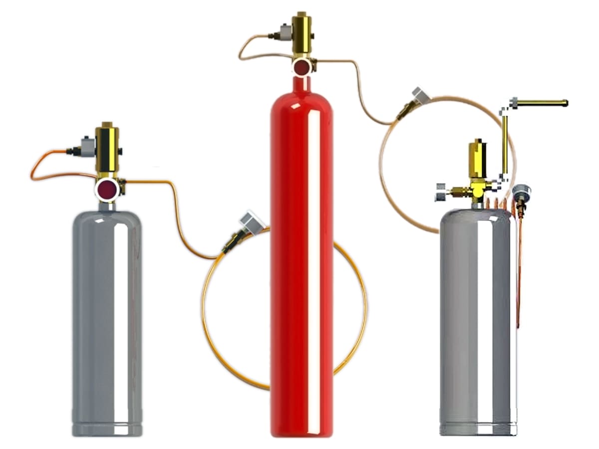 二氧化碳間接式探火管式滅火裝置,由容器閥、滅火劑瓶組、探火管、滅火劑輸送管路(釋放管)、噴嘴等組成,采用二氧化碳作為滅火劑,無需任何電源、專門的火災(zāi)探測器、復(fù)雜的設(shè)備和管線,集報警和滅火于一體,是一種成本低廉、結(jié)構(gòu)簡單、高度可靠的滅火裝置。該裝置采用柔性可彎曲的探火管作為火災(zāi)的報警部件,可以很方便的布置到每一個潛在著火點的最近處。探火管通過容器閥連接到二氧化碳滅火劑容器上,進(jìn)行火源探測,遇火時探火管爆破,探火管中的壓力下降,啟動容器閥,滅火藥劑通過滅火劑輸送管路(釋放管)輸送至防護(hù)區(qū)。